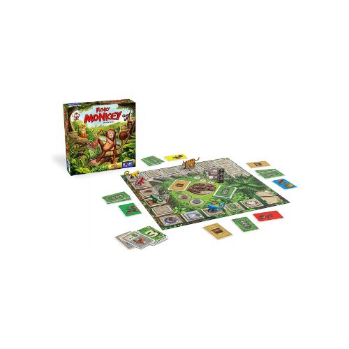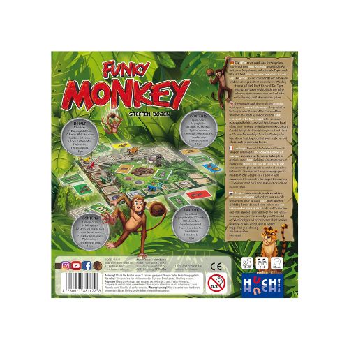Dans Funky Monkey, chaque joueur incarne un petit singe espiègle prêt à tout pour récolter un maximum de noix de coco ! Saute de liane en liane, évite les pièges de la jungle, esquive les tigres et balance-toi jusqu’à la victoire ! Mais attention : il faudra faire preuve de mémoire, d’adresse et… de beaucoup de ruse !