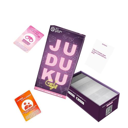 Juduku "Girl'z Night" est la première édition de Juduku écrite par des filles pour les filles. Le jeu comporte 480 cartes délirantes dont 120 cartes spéciales exclusives aux soirées "Girls only"